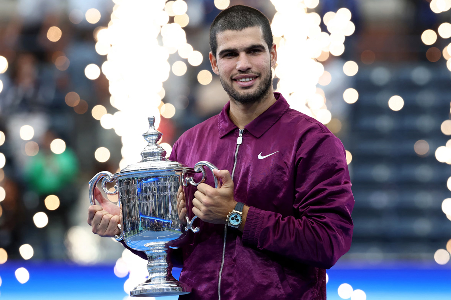 नवी दिल्ली : अमेरिकन ओपन टेनिस स्पर्धेत कार्लोस अल्कारेज विजेता ठरला. त्याने अंतिम सामन्यात जॅनिक सिनरचा ६-२, ३-६, ६-१, ६-४ असा विजय मिळवला. त्याचे हे सहावे ग्रँड सलॅम विजेतेपद ठरले. यावर्षी अल्कारेज आणि सिनर सलग तिसऱ्यांदा अंतिम फेरीत लढले. अंतिम सामना पाहण्यासाठी अमेरिकेचे राष्ट्राध्यक्ष डोनाल्ड ट्रम्प उपस्थित होते. (Alcaraz)