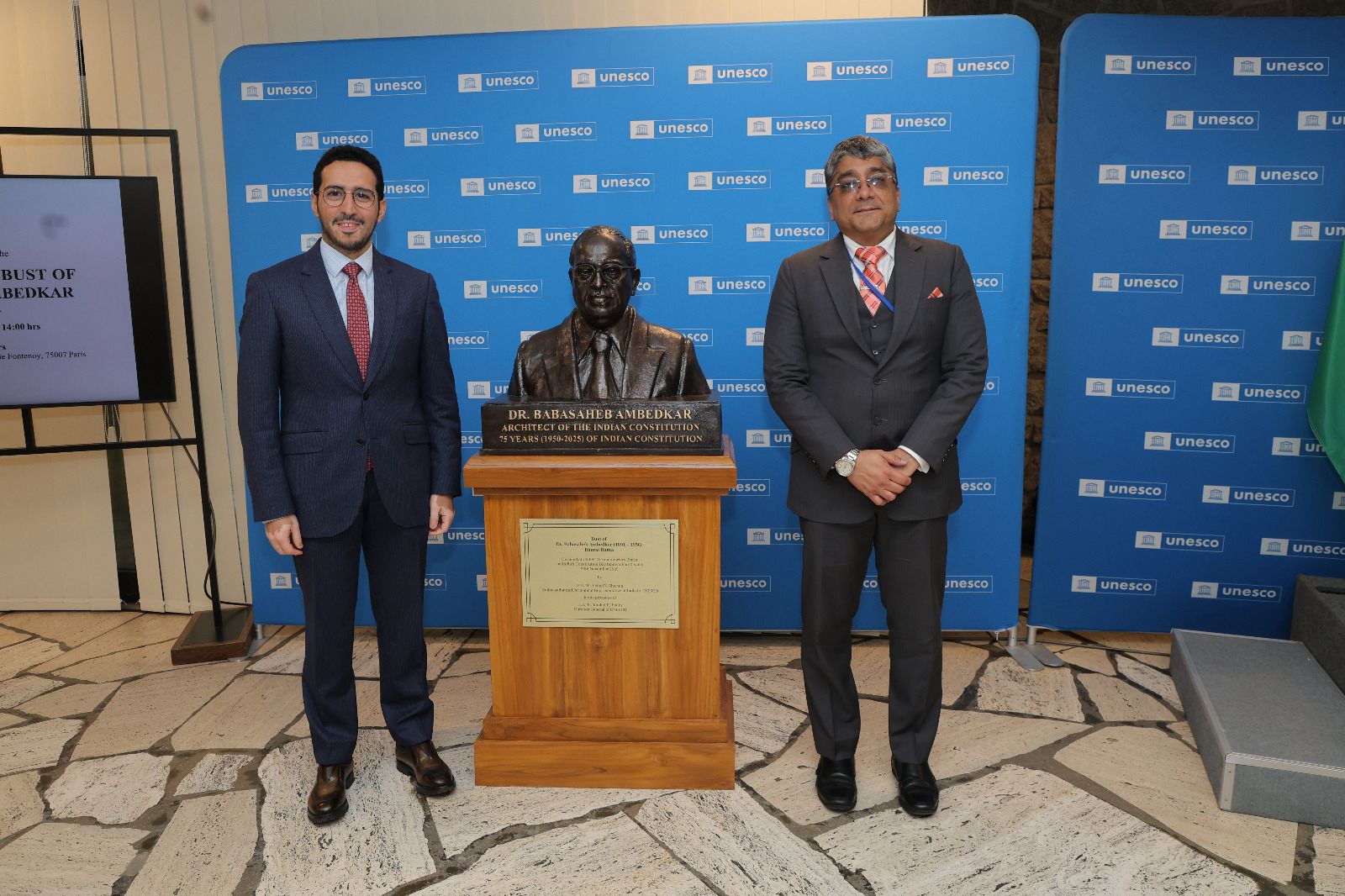 मुंबई : प्रतिनिधी : महाराष्ट्र शासनाने युनेस्कोच्या मुख्यालयाला भारतरत्न डॉ बाबासाहेब आंबेडकर यांचा पुतळा भेट म्हणून दिला होता. या पुतळ्याचे अनावरण करण्यात आल्याने युनेस्कोच्या पॅरिसमधील मुख्यालय प्रांगणात संविधान दिनी करण्यात आले. डॉ. आंबेडकर यांचा पुतळा युनोस्कोच्या मुख्यालयात दिमाखात उभा राहिला. युनेस्कोच्या मुख्यालयात युनेस्कोचे महासंचालक खालिद अल-इनाय यांच्या हस्ते पुतळ्याचे अनावरण झाले. याप्रसंगी भारताचे युनेस्कोतील स्थायी प्रतिनिधी विशाल शर्मा यांच्यासह अन्य मान्यवर उपस्थित होते. (Dr. Ambedkar’s statue unveiled at UNESCO)