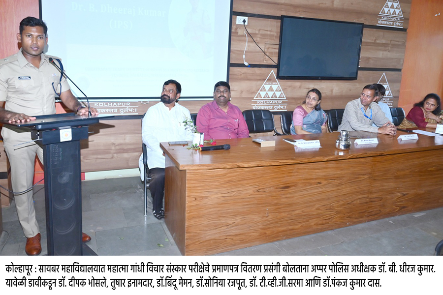 कोल्हापूर : प्रतिनिधी : महात्मा गांधीजींची सत्य, अहिंसा आणि प्रेम ही तत्त्वे आयुष्याला दिशा देणारी आहेत, असे मत अतिरिक्त पोलिस अधीक्षक डॉ. बी. धीरज कुमार यांनी व्यक्त केले. (CSIBER speech)