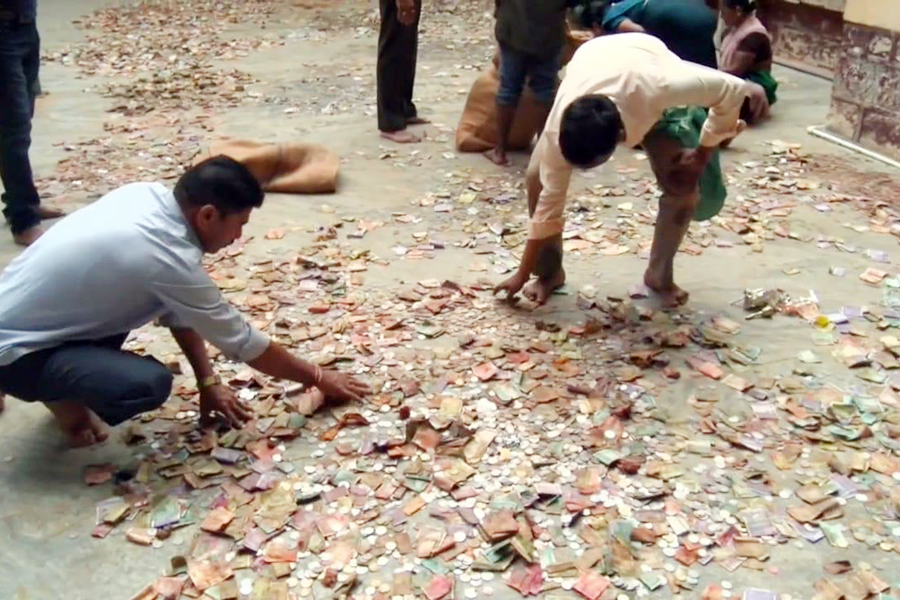 ढगफुटी सदृश्य पावसामुळे दोन दिवसापूर्वी सौंदत्ती येथील श्री यल्लम्मा मंदिरात मोठ्या प्रमाणावर पाणी शिरले होते. देवीच्या गाभाऱ्यातही पाणी गेले होते. पाणी मंदिरात ठेवण्यात आलेल्या दान पेटीत शिरल्यामुळे त्यातील नोटा आणि नाणी भिजून गेली होती. (Soaked banknotes)